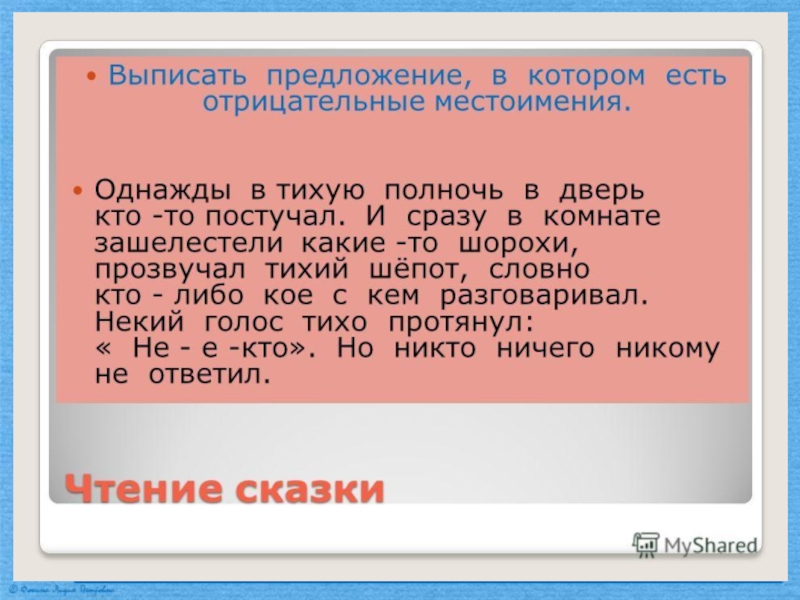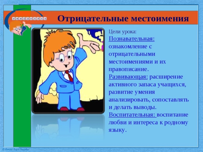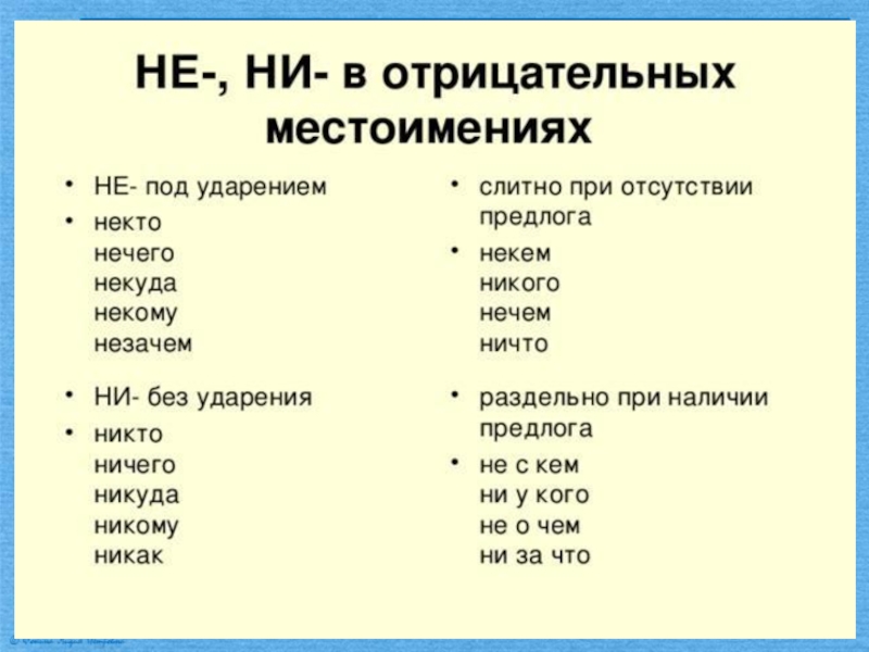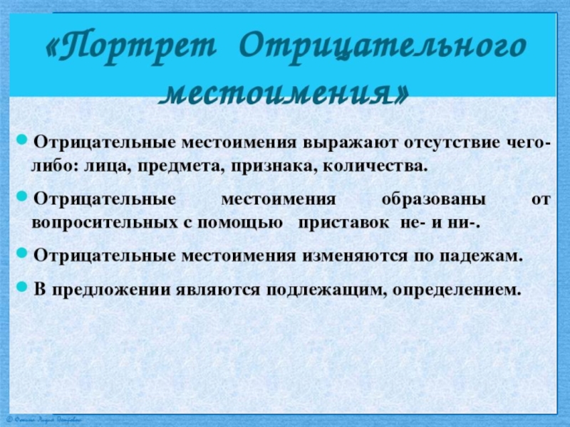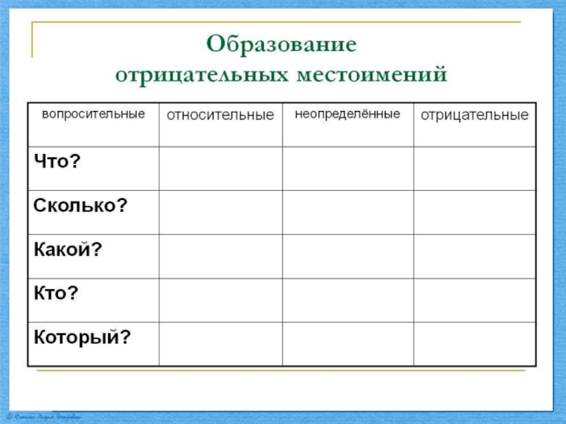 Презентация по русскому языку на тему Отрицательные местоимения (6 класс) Русский язык