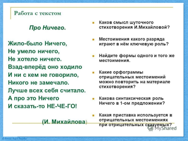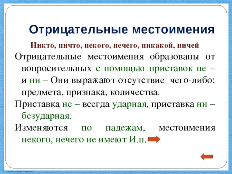 Презентация, доклад по русскому языку на тему Отрицательные местоимения (6 класс)