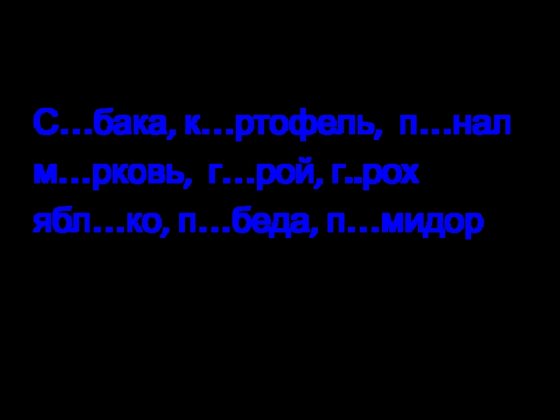 С…бака, к…ртофель, п…налм…рковь, г…рой, г..рохябл…ко, п…беда, п…мидор