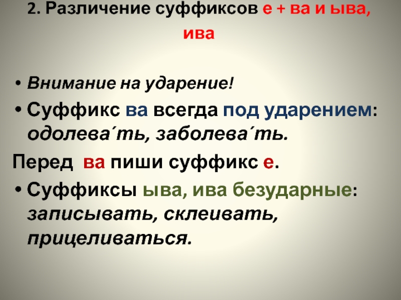 Слайд 32. Различение суффиксов е + ва и ыва, ива