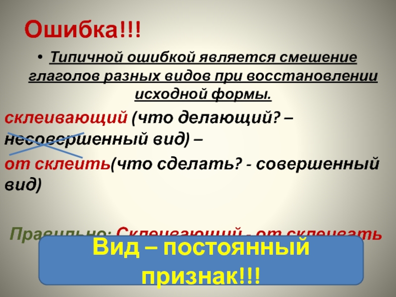 Типичной ошибкой является смешение глаголов разных видов при восстановлении исходной формы.
