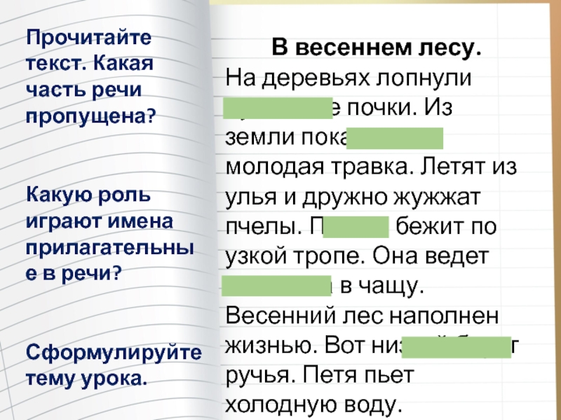 Прочитайте текст. Какая часть речи пропущена?