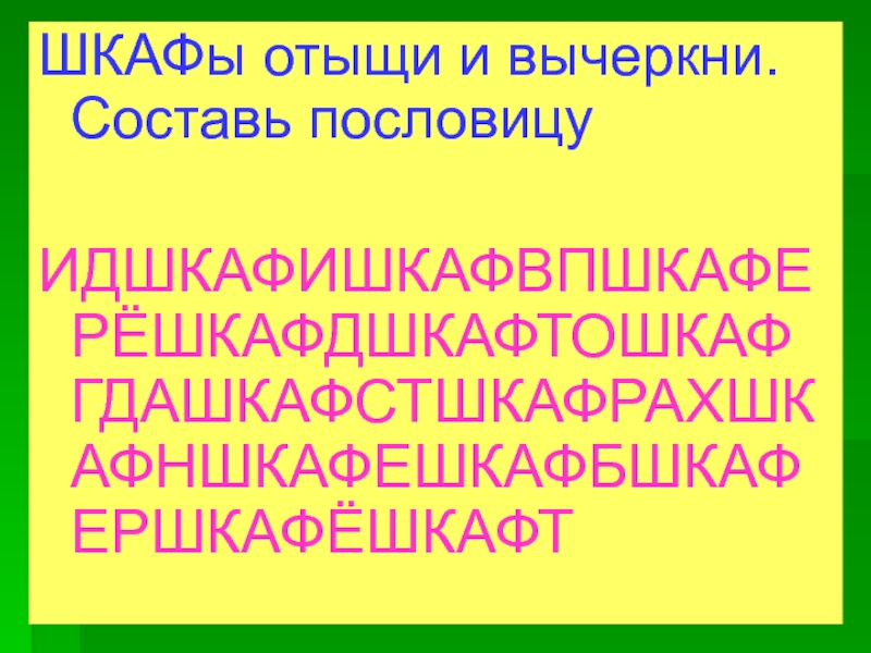 Слайд 12ШКАФы отыщи и вычеркни. Составь пословицу
