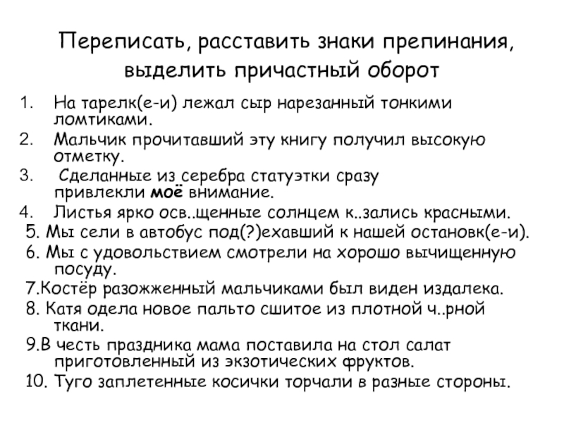 6. Приведите примеры из текстов с причастиями или причастными оборотами.