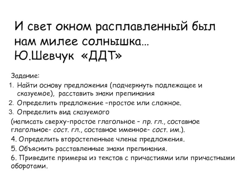 (подчеркнуть подлежащее и сказуемое), расставить знаки препинания