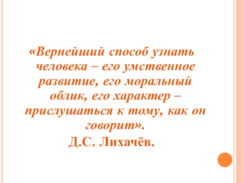 «Вернейший способ узнать человека – его умственное развитие, его моральный облик, его характер – прислушаться к тому,
