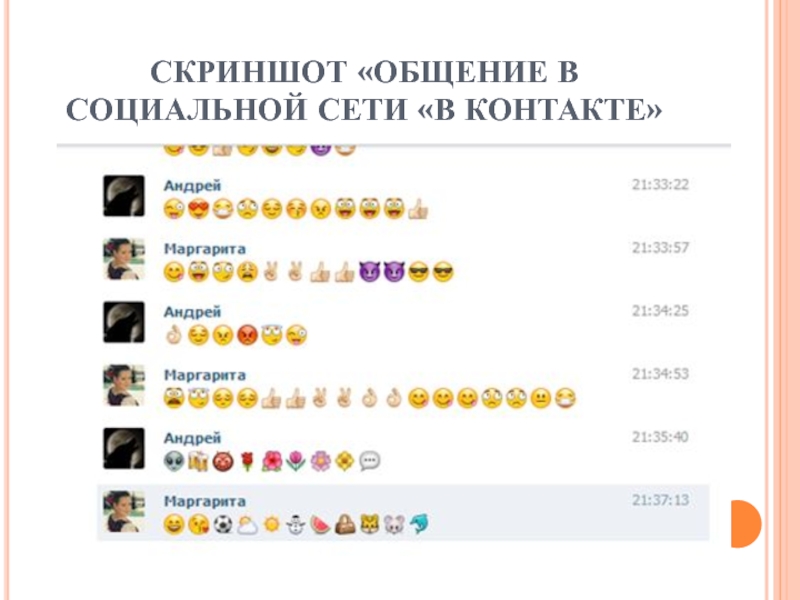 Слайд 8СКРИНШОТ «ОБЩЕНИЕ В СОЦИАЛЬНОЙ СЕТИ «В КОНТАКТЕ»