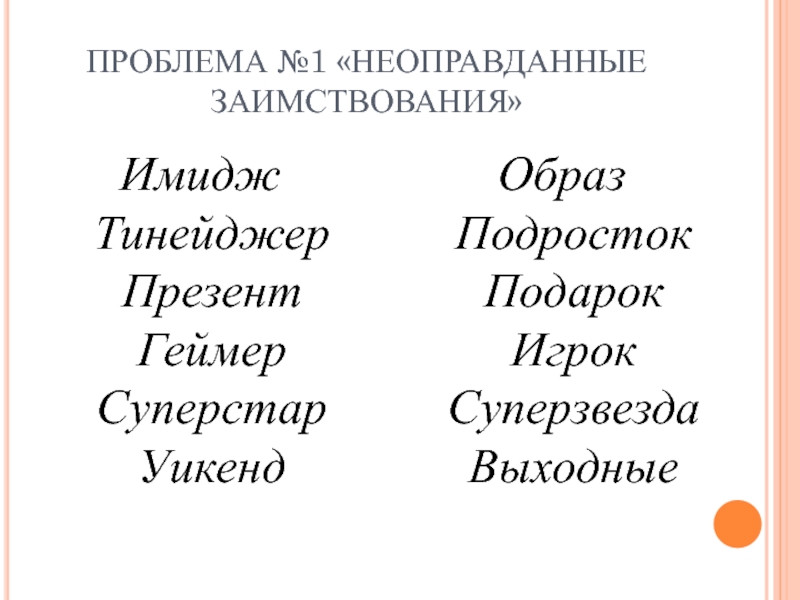 ПРОБЛЕМА №1 «НЕОПРАВДАННЫЕ ЗАИМСТВОВАНИЯ»Имидж  Тинейджер Презент Геймер Суперстар УикендОбраз Подросток Подарок Игрок Суперзвезда Выходные