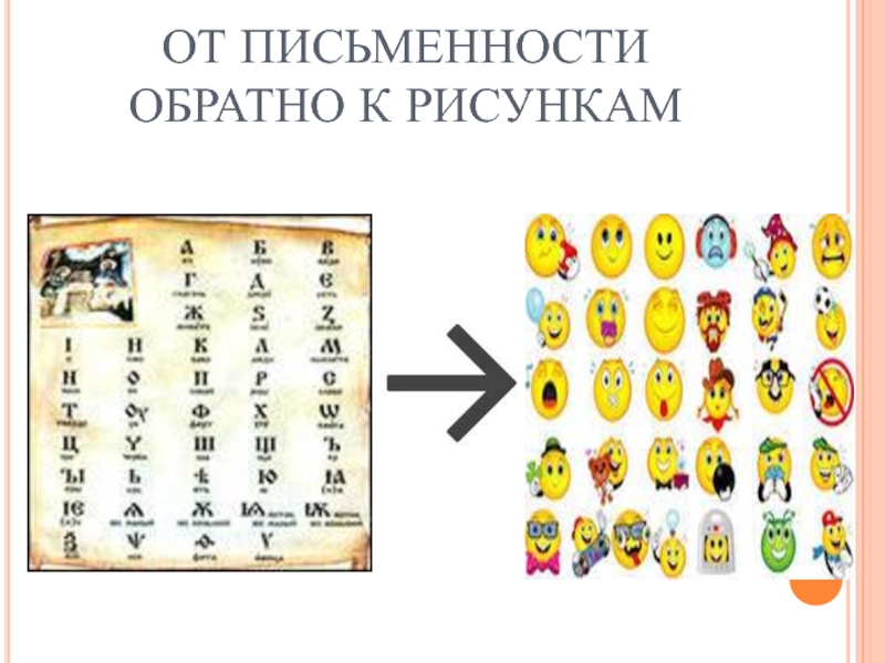 Слайд 10ОТ ПИСЬМЕННОСТИ ОБРАТНО К РИСУНКАМ