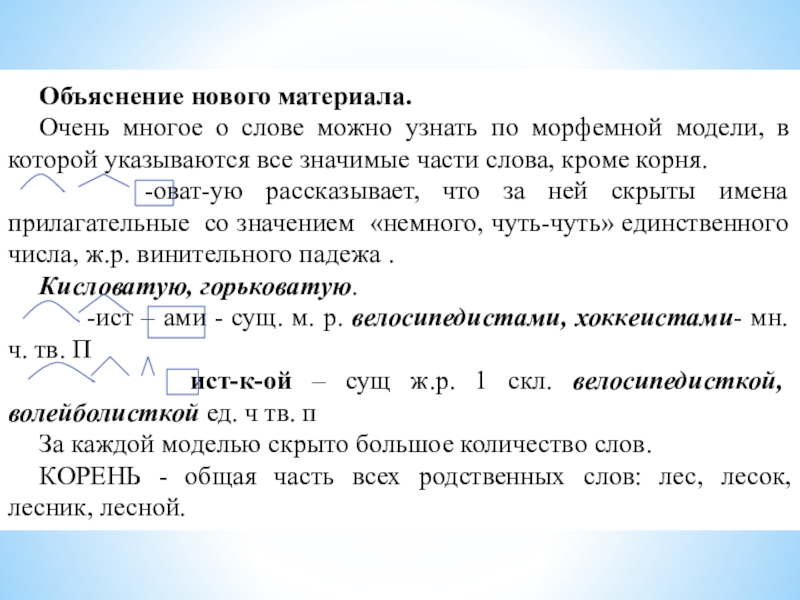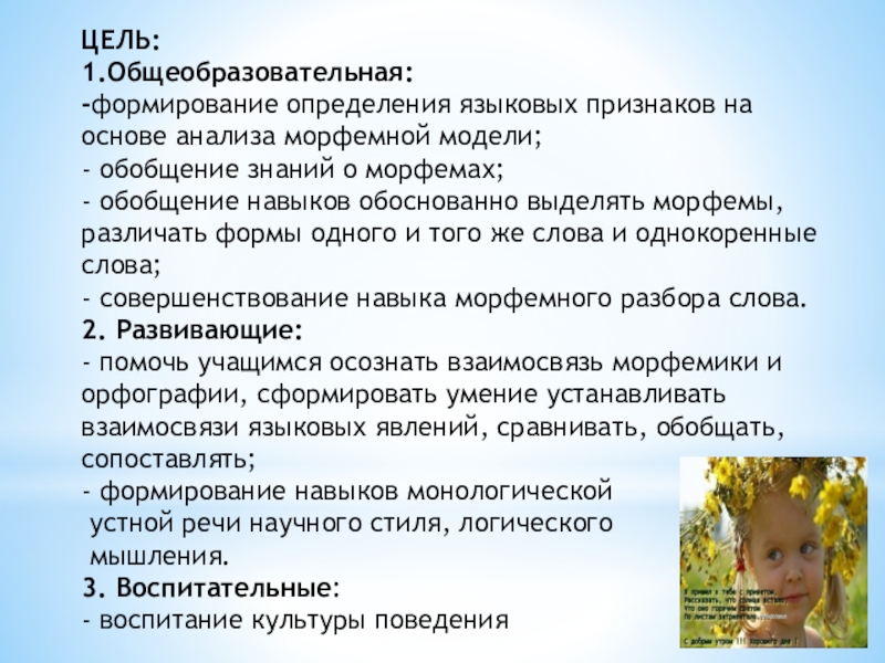 - обобщение навыков обоснованно выделять морфемы, различать формы одного и того же слова и однокоренные слова;
