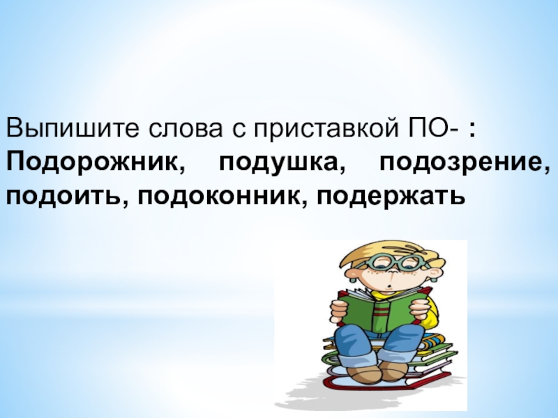 Подорожник, подушка, подозрение, подоить, подоконник, подержать