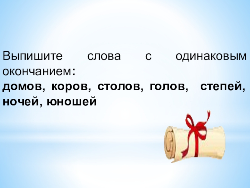 Слайд 9Выпишите слова с одинаковым окончанием: