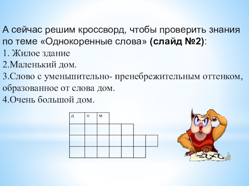 А сейчас решим кроссворд, чтобы проверить знания по теме «Однокоренные слова»