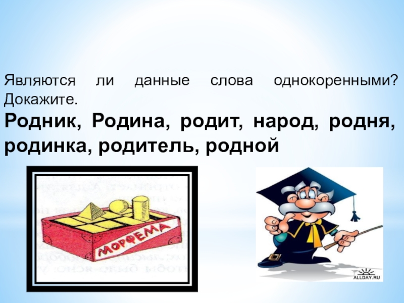 ТЕМА: Однокоренные слова: их смысловое и структурное сходство, морфемная модель как