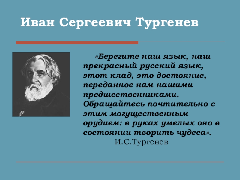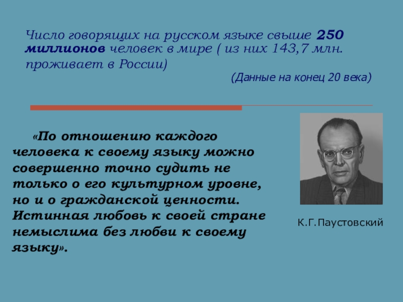 «По отношению каждого человека к своему языку можно совершенно точно судить не только о его культурном уровне, но и о гражданской ценности. Истинная любовь к своей стране немыслима без любви к своему языку».