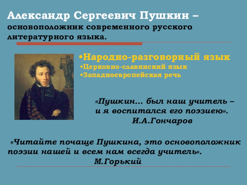 «Читайте почаще Пушкина, это основоположник поэзии нашей и всем нам всегда учитель».