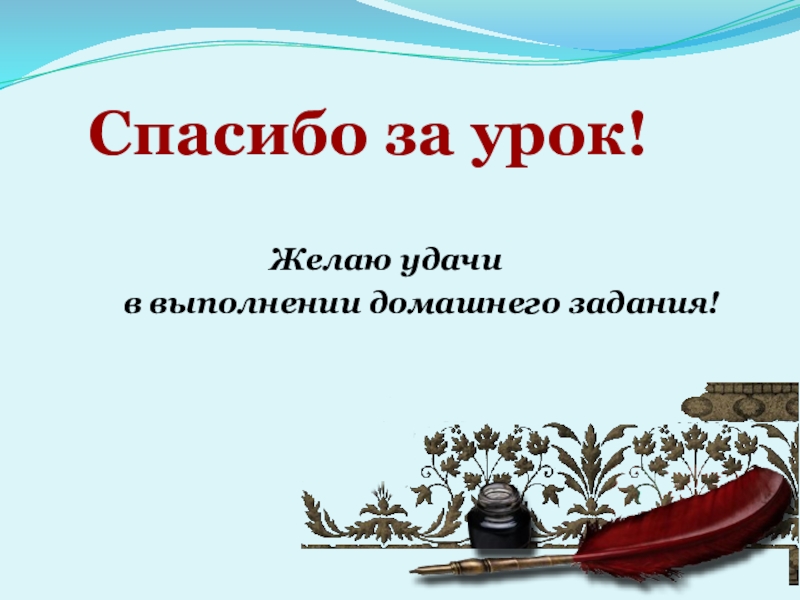 Спасибо за урок!Желаю удачи     в выполнении домашнего задания!