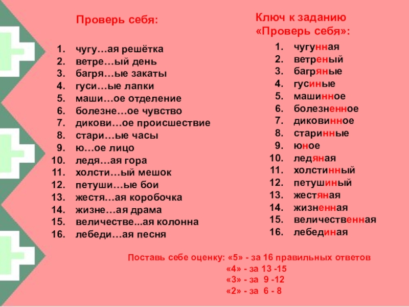 Поставь себе оценку: «5» - за 16 правильных ответов