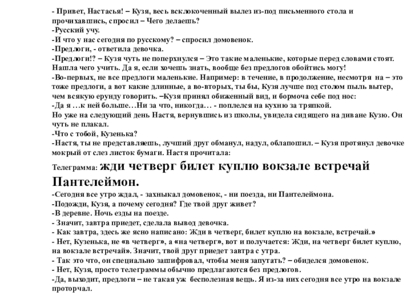 - Нет, Кузя, просто телеграммы обычно предлагаются без предлогов.