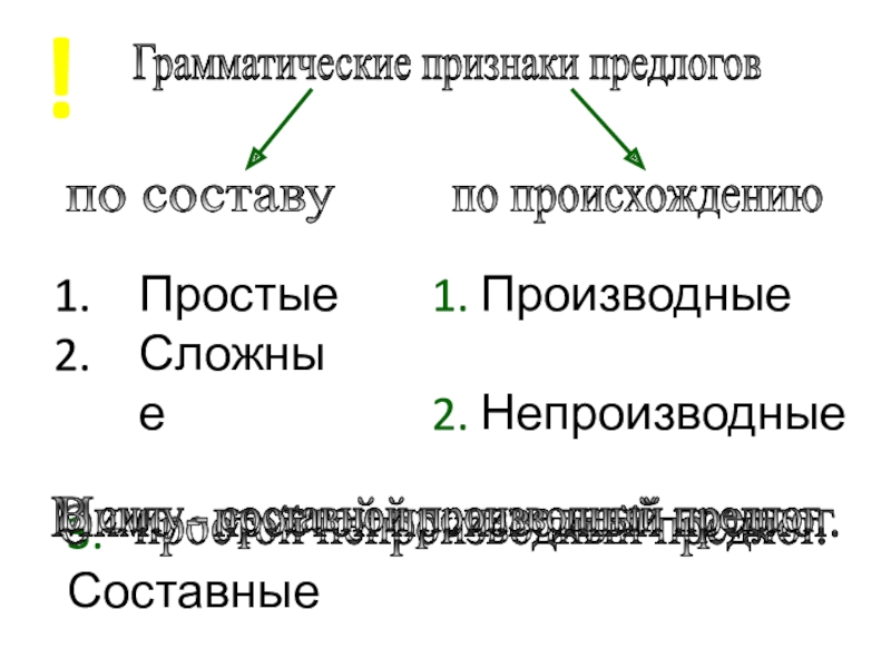 По грамматическим признакам предлоги бывают ______ и ______, ________ и ________.