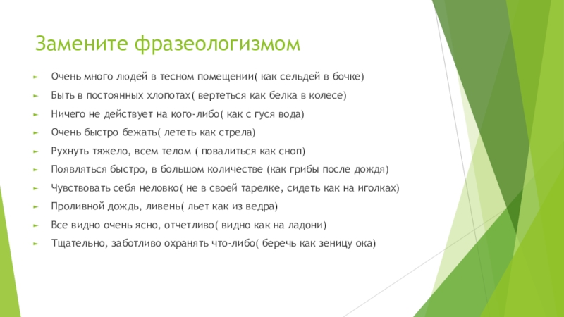 Слайд 6Замените фразеологизмом