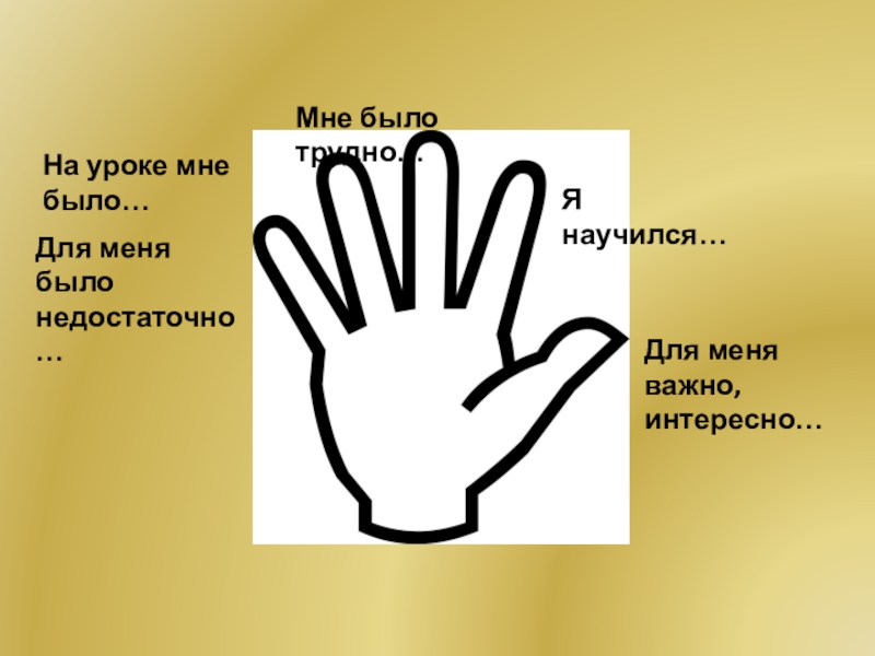 Для меня было недостаточно…На уроке мне было…Мне было трудно…Я научился…Для меня важно,интересно…