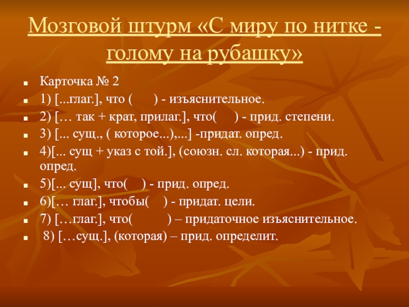 Слайд 5Мозговой штурм «С миру по нитке - голому на рубашку»