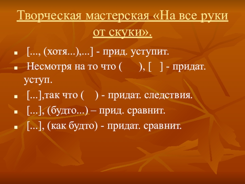 Слайд 8Творческая мастерская «На все руки от скуки».