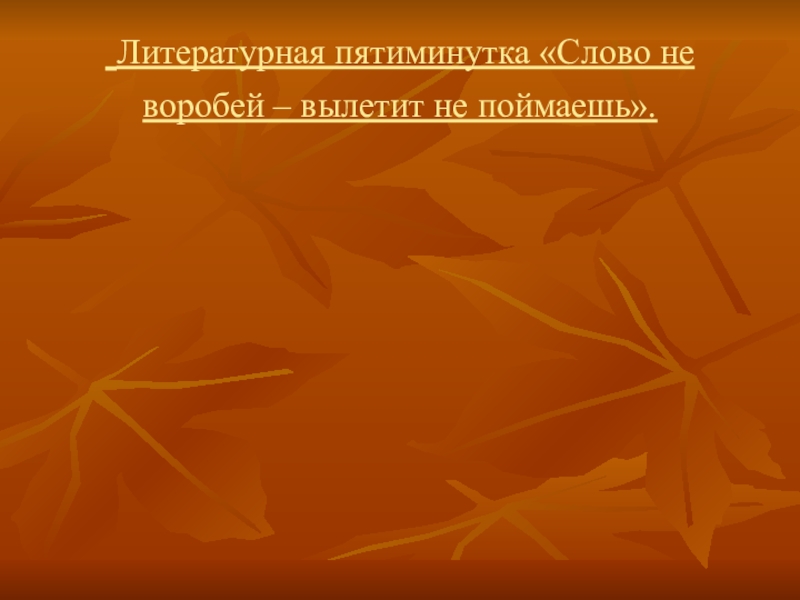 Слайд 9 Литературная пятиминутка «Слово не воробей – вылетит не поймаешь».