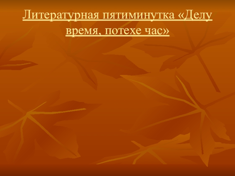 Слайд 7Литературная пятиминутка «Делу время, потехе час»