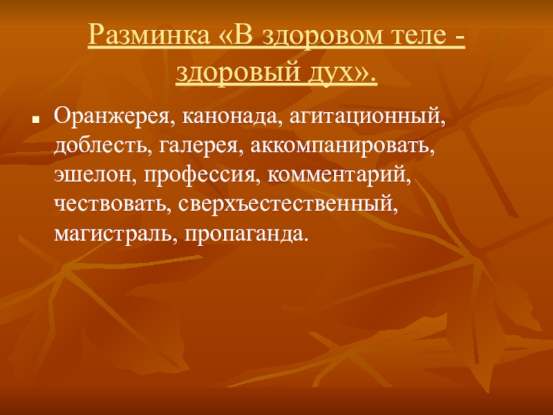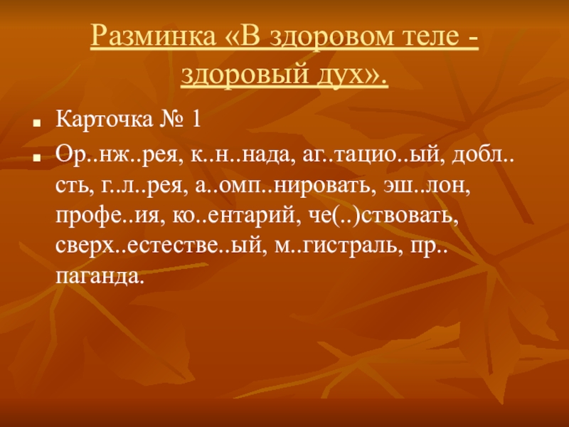 Слайд 3Разминка «В здоровом теле - здоровый дух».