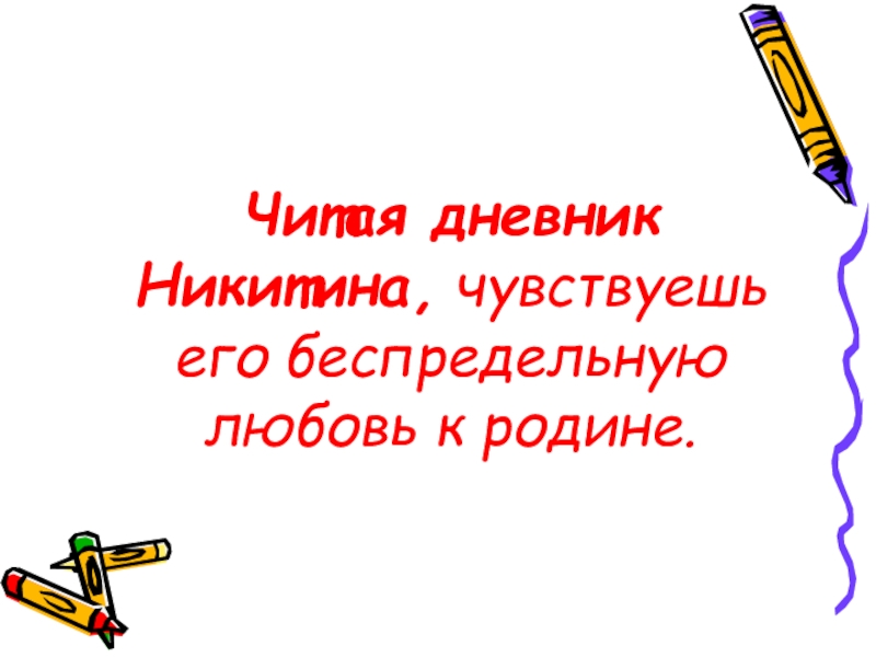 Слайд 28 Когда читаешь дневник Никитина, то чувствуешь его беспредельную любовь к