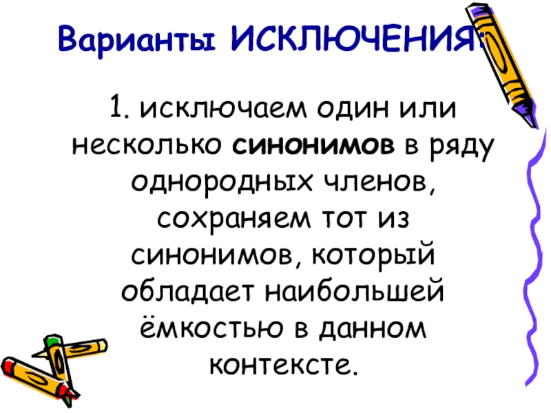 1. исключаем один или несколько синонимов в ряду однородных членов,