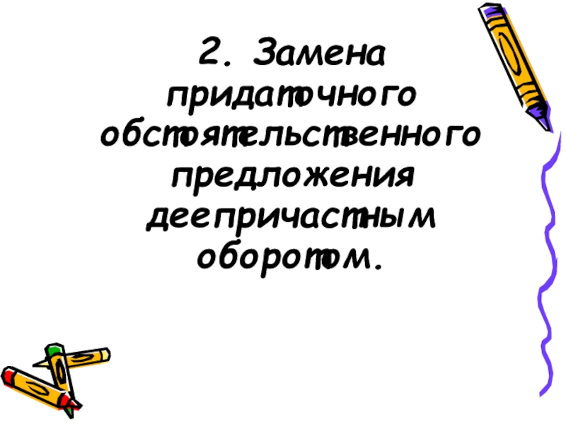 Слайд 27 2. Замена придаточного обстоятельственного предложения деепричастным оборотом.