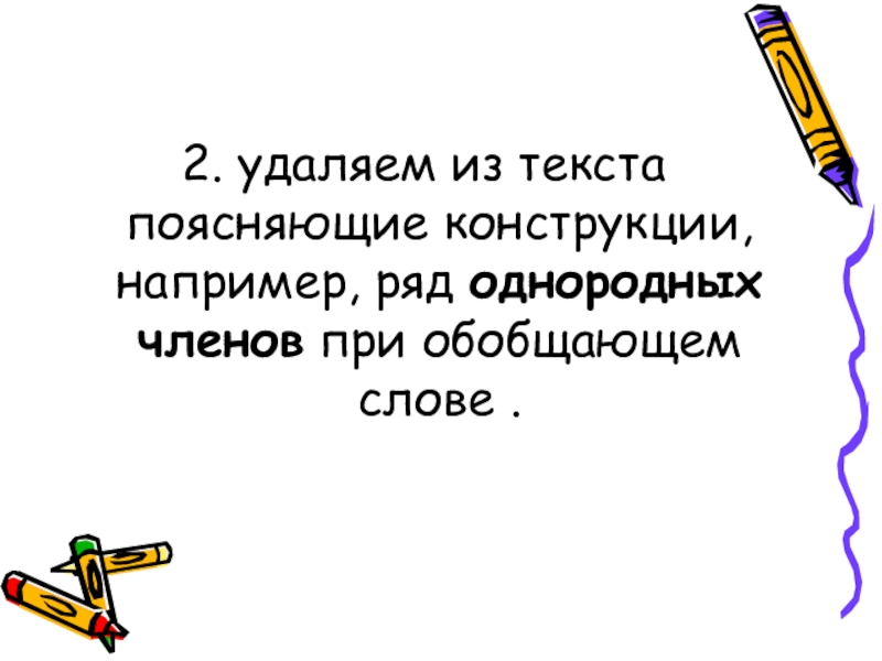 Слайд 162. удаляем из текста поясняющие конструкции, например, ряд однородных членов при