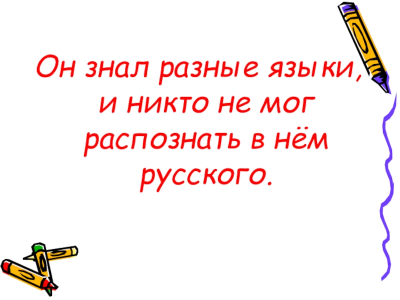 Слайд 18Он знал разные языки, и никто не мог распознать в нём