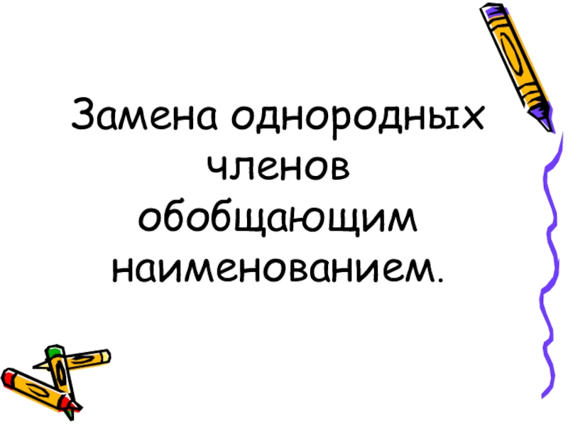 Слайд 22Замена однородных членов обобщающим наименованием.