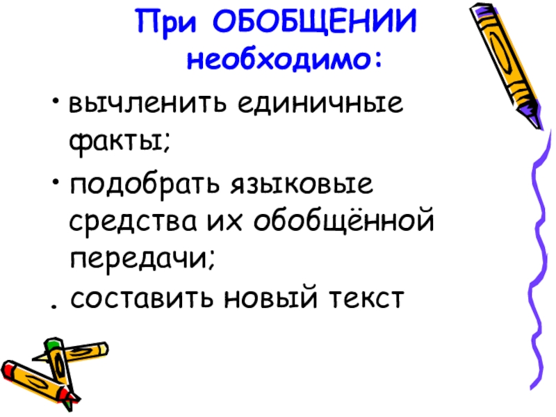 Слайд 19При ОБОБЩЕНИИ необходимо: