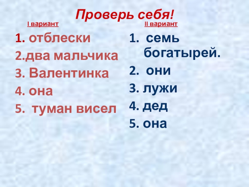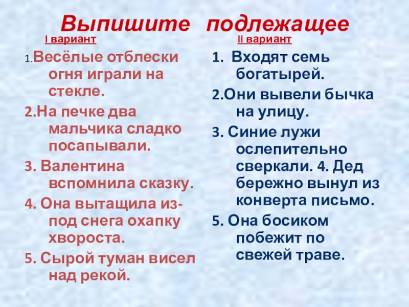 3. Синие лужи ослепительно сверкали. 4. Дед бережно вынул из конверта письмо.