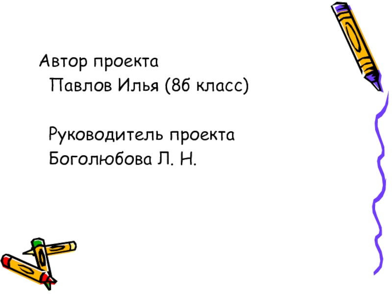 Автор проекта  Павлов Илья (8б класс)  Руководитель проекта  Боголюбова Л. Н.