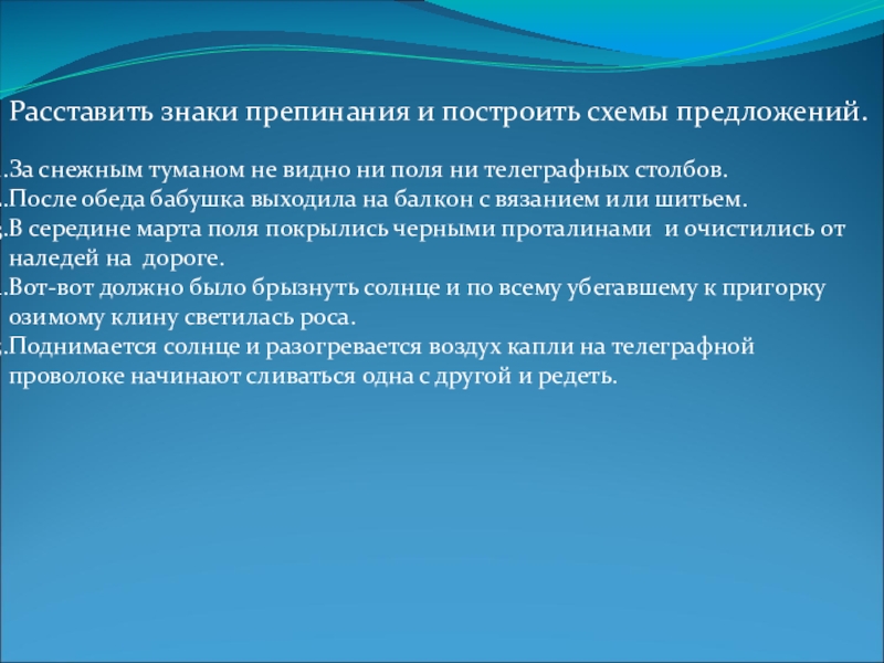Слайд 5Расставить знаки препинания и построить схемы предложений.