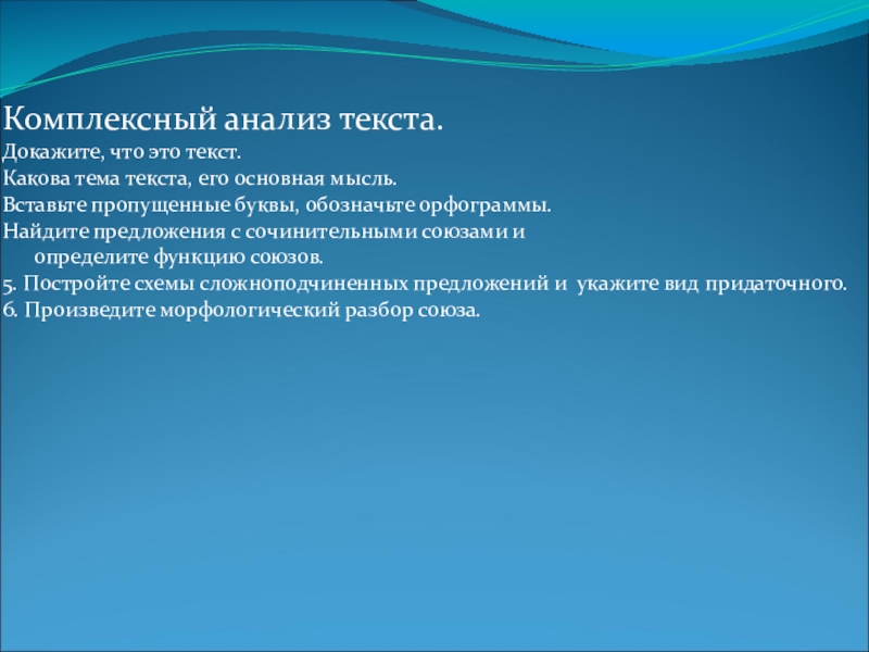 Комплексный анализ текста.Докажите, что это текст.Какова тема текста, его основная мысль.Вставьте пропущенные буквы, обозначьте орфограммы.Найдите предложения с