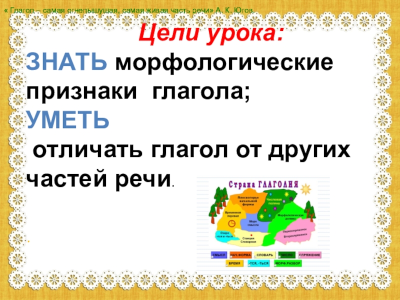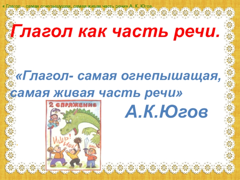 « Глагол – самая огнепышущая, самая живая часть речи» А. К. Югов.