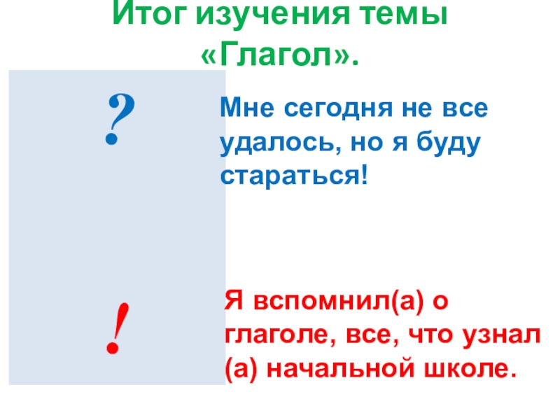 ЗНАТЬ морфологические признаки глагола;