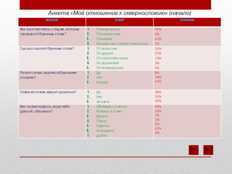 Слайд 17Анкета «Моё отношение к сквернословию» (начало)