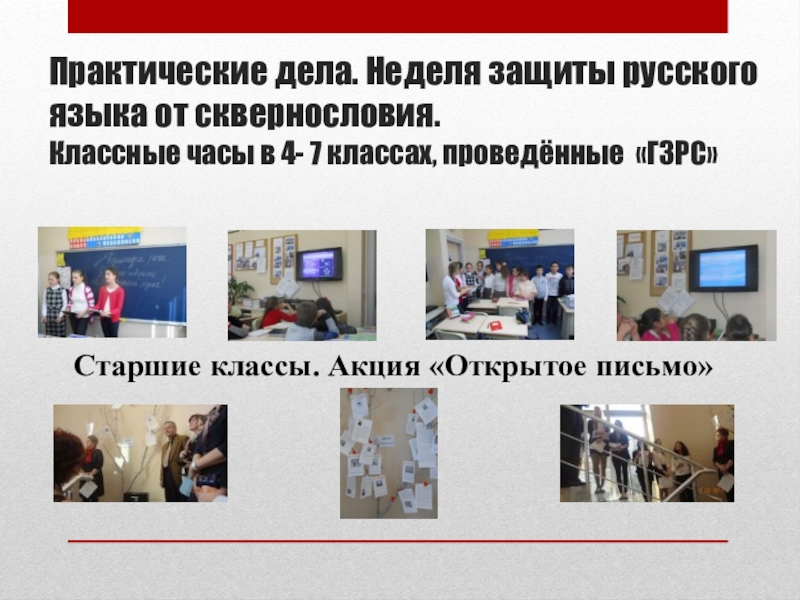 Слайд 22Практические дела. Неделя защиты русского языка от сквернословия.