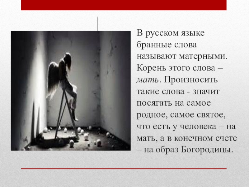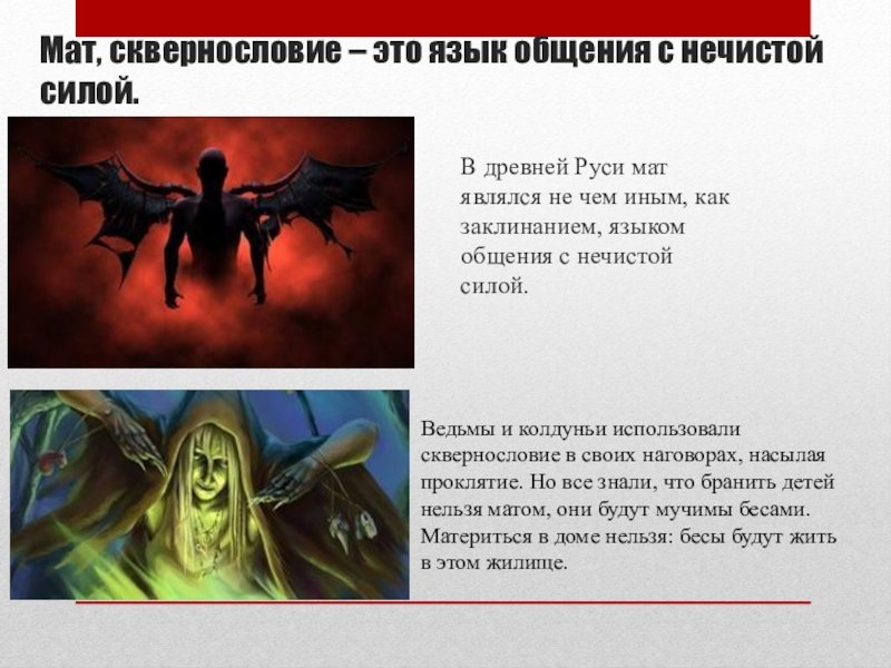 Слайд 5Мат, сквернословие – это язык общения с нечистой силой.