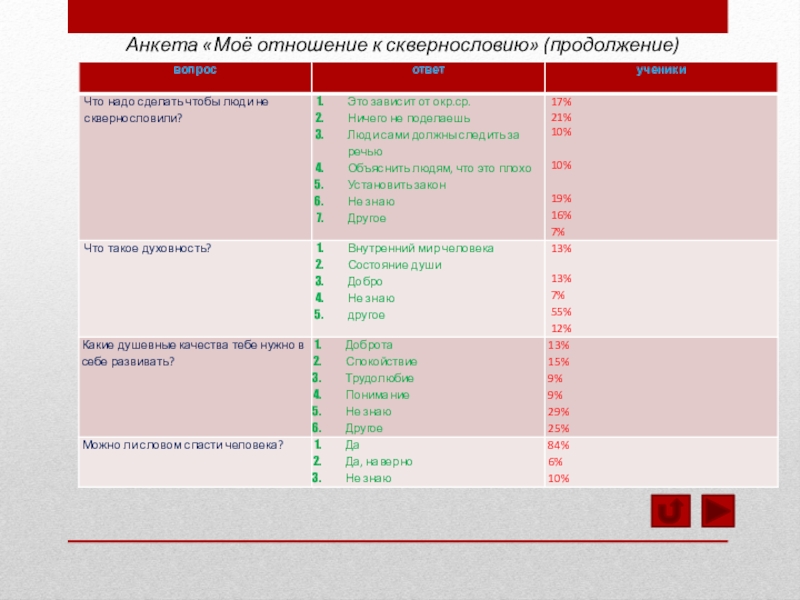 Слайд 18Анкета «Моё отношение к сквернословию» (продолжение)