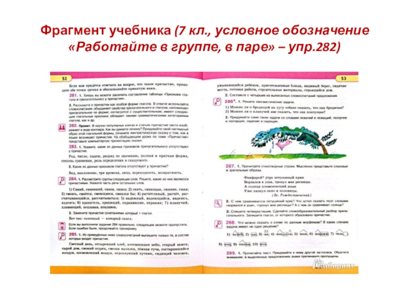 Слайд 9Фрагмент учебника (7 кл., условное обозначение «Работайте в группе, в паре»
