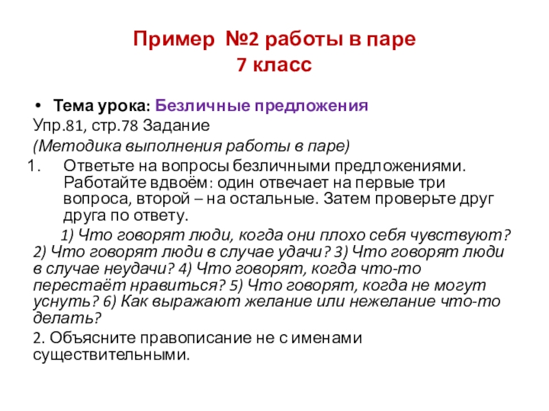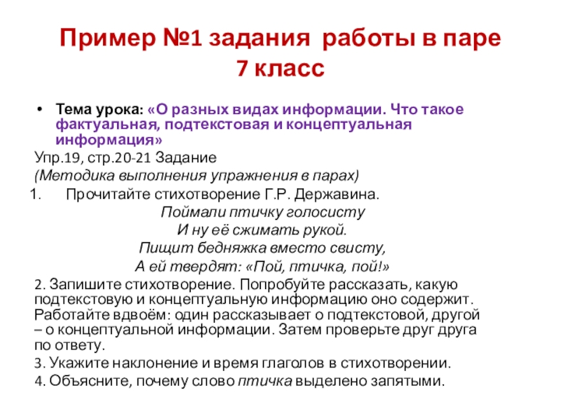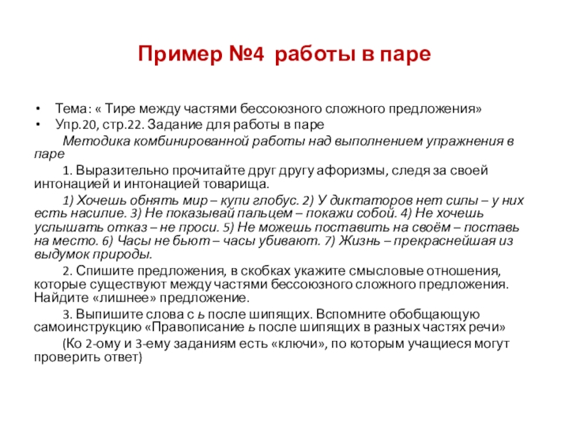 Организуя работу пары, можно конкретизировать 3-е и 4-е задания: